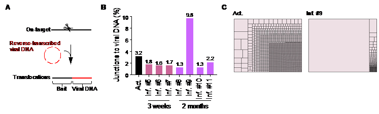 图三. PEM-seq鉴定炎症T细胞中病毒DNA整合及单个病毒DNA位点所占比例