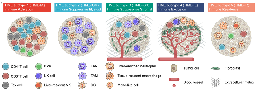 图2 肿瘤免疫微环境的5种亚型(TIMELASER)示意图