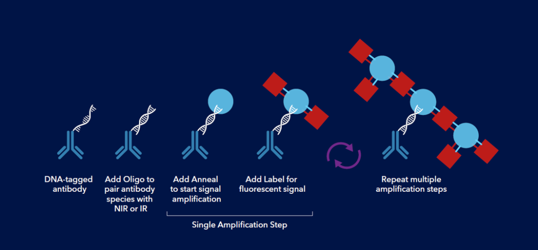 Figure 1 Stellar荧光检测灵敏度是通过DNA与检测抗体相连的多个信号放大步骤实现。