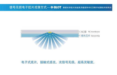 1,Western膜直接贴在感光芯片上进行成像,所有信号均被采集,没有任何光损失,极大地提高了成像的灵敏度。