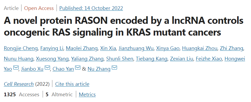 Cheng, R., Li, F., Zhang, M. et al. A novel protein RASON encoded by a lncRNA controls oncogenic RAS signaling in KRAS mutant cancers. Cell Res (2022). https://doi.org/10.1038/s41422-022-00726-7