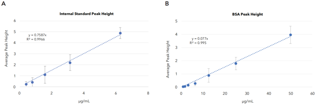 ⬆ 内部标准品LOD为0.20μg/mL;BSA LOD为0.90μg/mL;