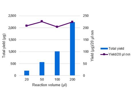 IVT反应规模与mRNA产量的关系: