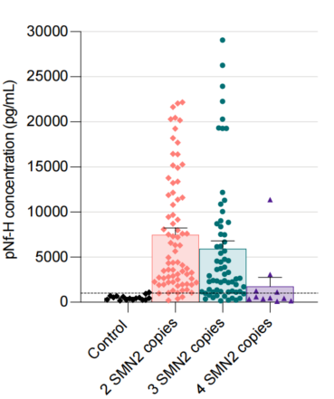 ▪ pNF-H是轴突损伤期间释放到血浆和脑脊液(CSF)中的神经元特异性细胞骨架结构蛋白,可作为SMA患者疾病和治疗反应的生物标志物。