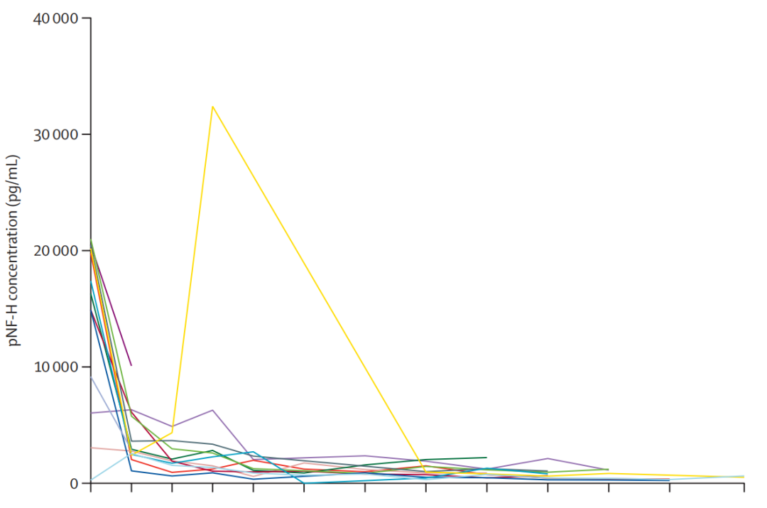 参考文献:Alves, Christiano R R et al. “Implications of circulating neurofilamentsfor spinal muscular atrophytreatment early in life: A case series.” Molecular therapy. Methods & clinical development vol. 23 524-538. (2021).