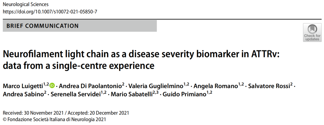 ▪ NfL可评估遗传性前白蛋白淀粉样变ATTRv严重程度和监测其进展的可靠生物标志物。
