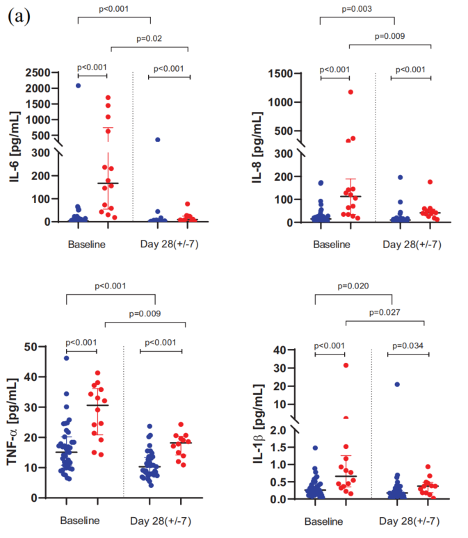 ▪ 严重COVID-19患者伴有细胞因子血清浓度增加和神经损伤,主要表现为sNfL水平升高;