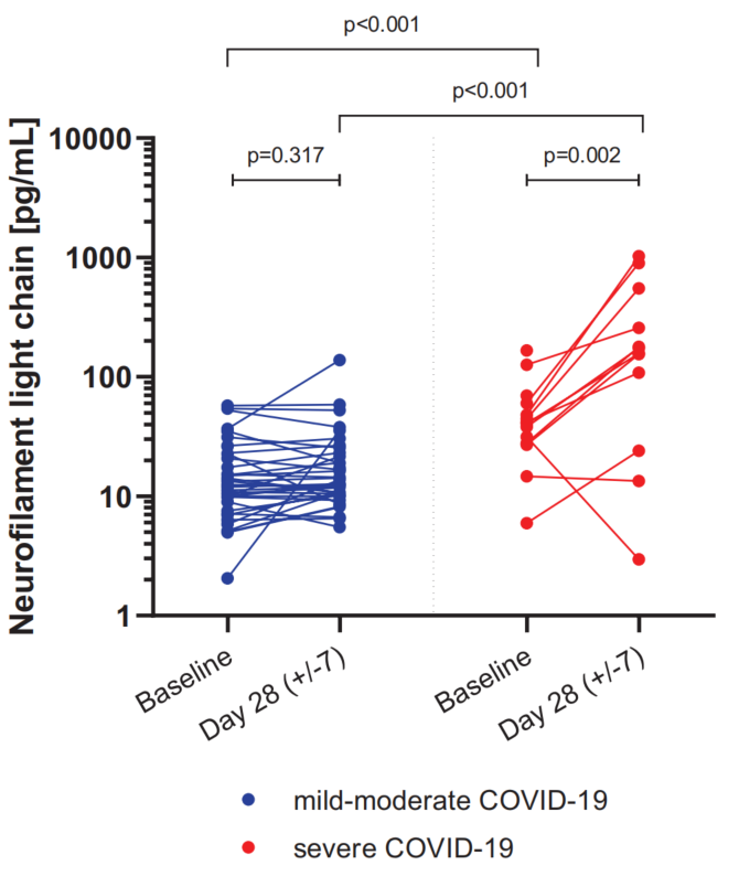 参考文献:Hirzel, Cédric et al. “Neuro-axonal injury in COVID-19: the role of systemic inflammation and SARS-CoV-2 specific immune response.” Therapeutic advances in neurological disorders (2022).