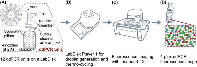 3、Centrifugal Microfluidic Integration of 4-Plex ddPCR Demonstrated by the Quantification of Cancer-Associated Point Mutations. Processes 2021, 9, 97.