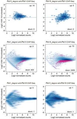 图1. 交叉ChIP-seq实验发现Pol III可以大规模影响Pol II基因转录