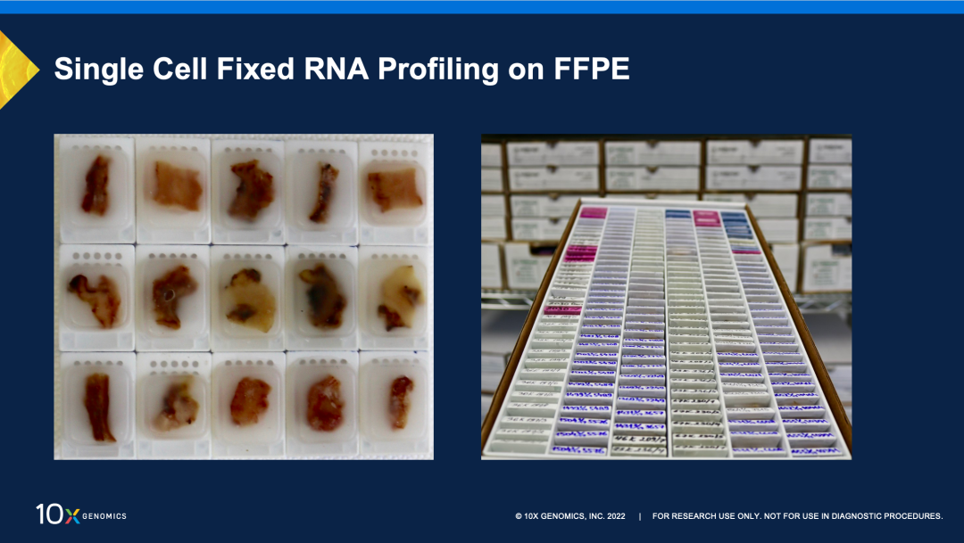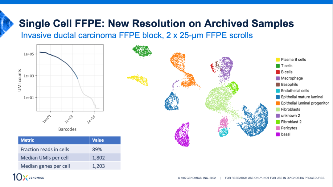 在今年刚刚结束的AGBT大会上,10x Genomics首次宣布了在单细胞及空间维度针对FFPE样本的全新解决方案,同时也成为目前市面上首家有望同时提供商品化的单细胞及空间FFPE解决方案的厂家。