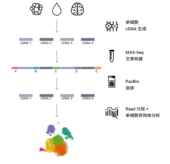 PacBio推出的MAS-Seq for 10x Single Cell 3'试剂盒处理单细胞cDNA可以得到一个可用于HiFi测序的文库,您可以实现: