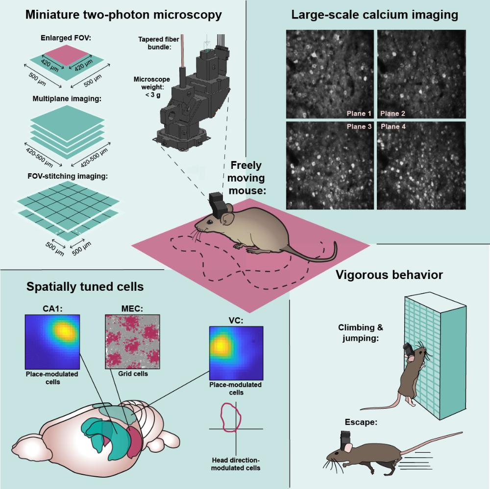 头戴式微型双光子显微镜MINI2P:记录小鼠自由移动时大脑内不同深度数千个神经元的活动!