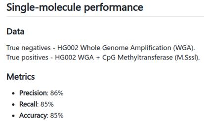 2、对于算法准确性的描述比较模糊。PacBio Github页面只给出了下面这些非常概括性的统计量,但并没有描述MI值多高会被记为阳性,具体的过滤标准如何。