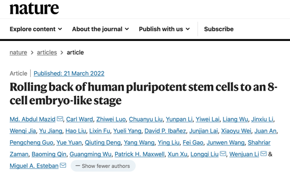 “这些全能性的8细胞期胚胎样细胞重建了受精卵仅分裂3次后的胚胎状态,相比过去的多能干细胞,这种细胞可以分化为胎盘组织,并可能发育为更成熟的各类身体组织,为全世界数百万需要进行器官移植的患者带来了福音。”论文的通讯作者,中国科学院Miguel A. Esteban教授、Md. Abdul Mazid博士和李文娟博士表示。