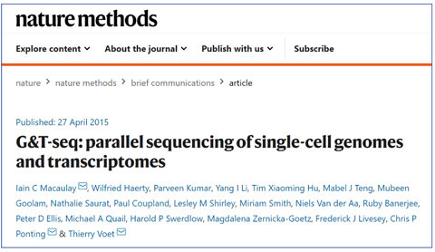 1. Iain C Macaulay.et al.G&T-seq: parallel sequencing of single-cell genomes and transcriptomes.Nature methods 12.6 (2015): 519-522;