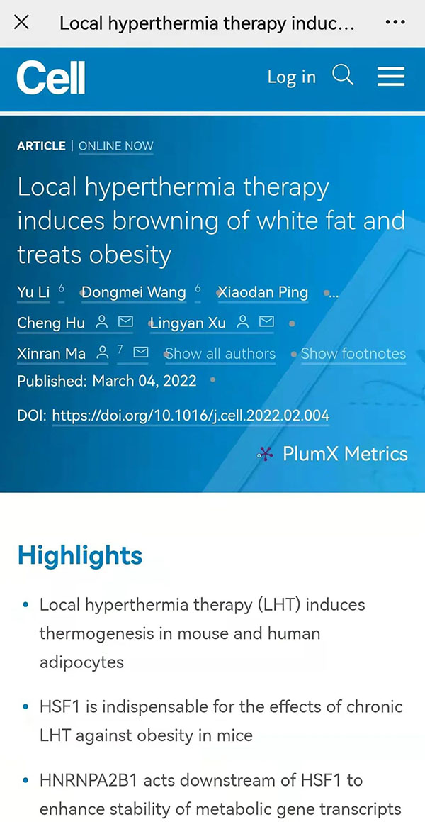 突破!华东师范大学《细胞》封面发文:破解局部热疗减脂机制