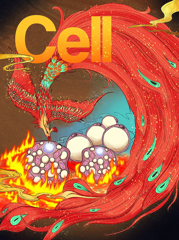 Cell 封面论文设计图:局部热疗促进白色脂肪棕色化,改善代谢健康。封面创意取自Pheonix故事(希腊神话的不死鸟和凤凰涅槃传说)。白色脂肪(White fat)经历热疗(Hyperthermia)后发生棕色化转变(Browning),迸发出能量(Pheonix),为人类带来健康。