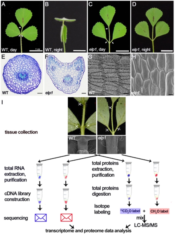 图1. elp1突变体及A17野生型的转录组和蛋白组实验流程图