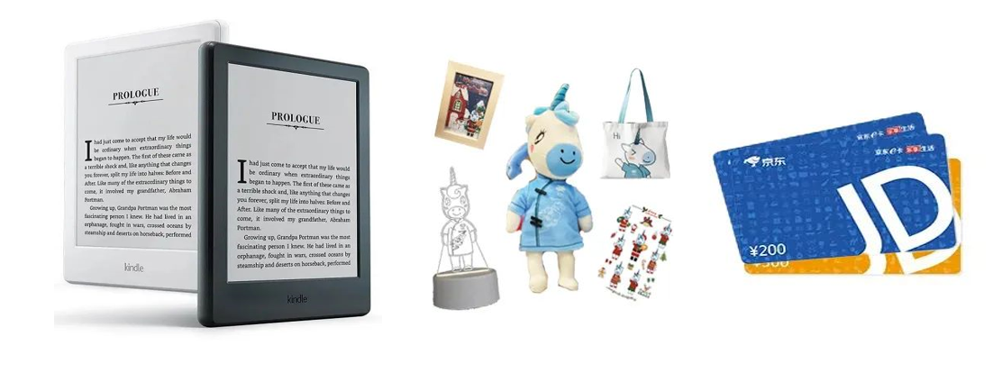 小伙伴儿进入直播间,在讨论区,评论创业相关的话题,或者发布一个创业路上关于友情故事。我们将随机抽取三位幸运儿,获得如下奖品: