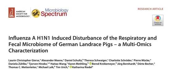 来自格赖夫斯瓦尔德大学微生物研究所的Laurin Christopher Gierse研究团队发表了一篇题为《Influenza A H1N1 Induced Disturbance of the Respiratory andFecal Microbiome of German Landrace Pigs - a Multi-Omics Characterization》的文章,利用猪粪便研究甲型流感病毒感染期间微生物组组成和功能的变化。