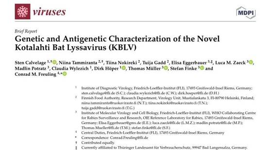 [2] Calvelage S , Tammiranta N , Nokireki T , et al. Genetic and Antigenetic Characterization of the Novel Kotalahti Bat Lyssavirus (KBLV)[J]. Viruses, 2021, 13(1):69.
