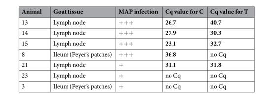 表1. 从感染了分枝杆菌的不同组织中提取核酸