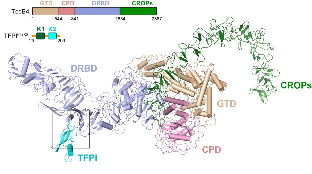 随后,通过对比, 研究团队对艰难梭菌毒素B进入细胞的路径进行了归类:第一类以TcdB1/3/5为代表,从FZD这扇“大门”进入;第二类主要包含“超毒力分支”的TcdB2和TcdB4,选择通过TFPI这扇“大门”进入。