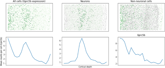 3. 可以按照细胞类型绘制基因表达图,以及查看小鼠大脑内受体基因表达模式的变化。