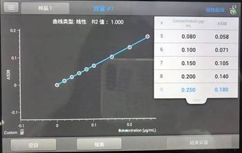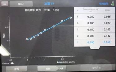 亚硝酸盐,是含有亚硝酸根阴离子(NO2−)的盐。最常见的是亚硝酸钠,常在腌制食品、小咸菜等食品中存在,而由亚硝酸盐引起食物中毒的几率较高,大约食入0.3~0.5克的亚硝酸盐即可引起中毒,3克导致死亡。在食品安全亚硝酸盐检测标准中要求使用紫外分光光度计,但现在对现场检样的要求越来越高,而传统大的紫外分光光度计不方便携带,操作相对复杂。而我相对小巧,可以躺在航空箱里面,再加上一些其它的比如移液器、必要的试剂、移液枪头等,就可以组合成一套快速亚硝酸盐户外检测箱。对于缺乏实验室检测环境的场景来说,检测就会方便很多。我需要的上样量更少,超微量基座只需2μL,比色杯只需要100μL即可快速检测。操作起来也更加方便,只需在我的触摸屏上轻触即可在几秒之内得到检测数据。如下是用我对稀释不同浓度梯度的亚硝酸盐含量检测结果: