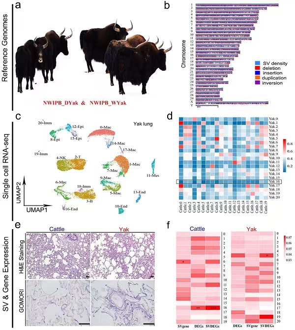 构建了家牦牛和野牦牛高质量参考基因组,并揭示了基因组结构变异在基因表达调控和肺脏细胞分化中的潜在功能