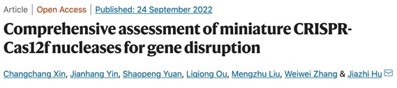 2022年9月24日,北京大学生命科学学院、北大-清华生命科学联合中心胡家志课题组在Nature Communications上在线发表了题为Comprehensive assessment of miniature CRISPR-Cas12f nucleases for gene disruption的研究论文。该研究应用了PEM-seq技术对领域内多种CRISPR-Cas系统的编辑活性、脱靶效应以及对基因组稳定性的影响进行了横向比较,重点描绘了CRISPR-Cas12家族编辑工具的特征。
