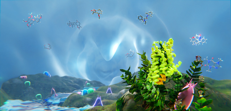 不同苦味分子激活表达在味蕾上的苦味受体TAS2R46的艺术展示图(Julie Liu设计绘制)