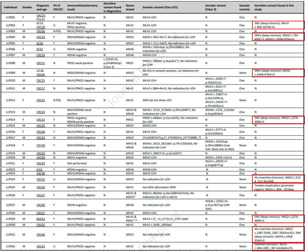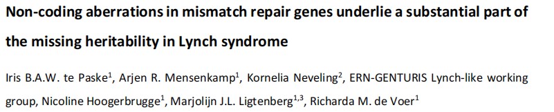 参考文献:Non-coding aberrations in mismatch repair genes underlie a substantial part of the missing heritability in Lynch syndrome