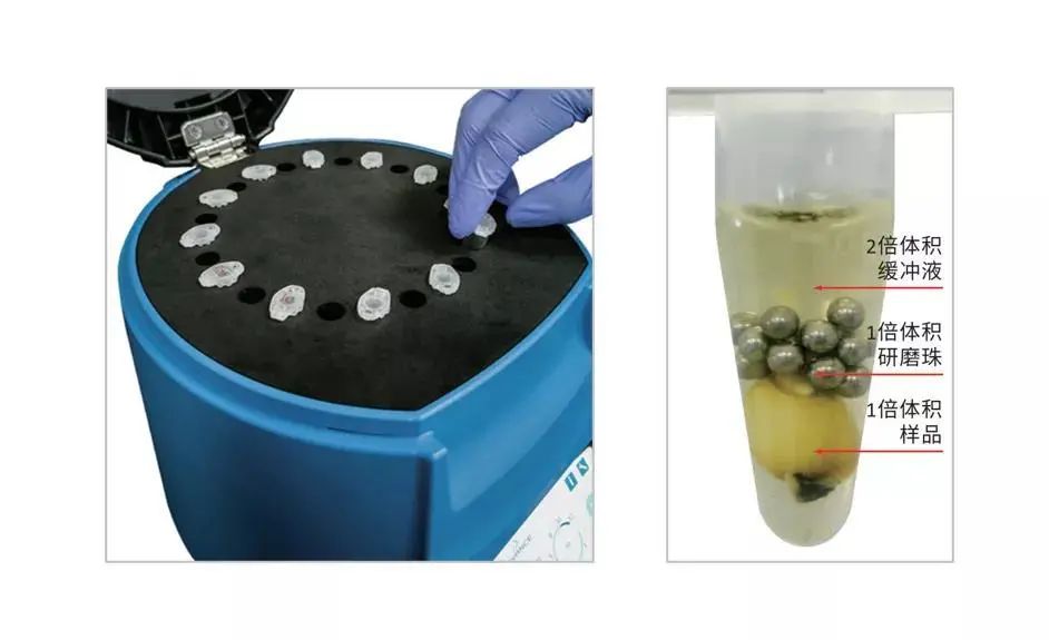 > 转头以每分钟几千次的频率对试管进行交替式击打,使研磨珠和样品管发生剧烈震荡,样品被彻底破碎和匀浆;
