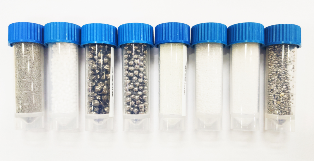 > 可提供针对不同样品的不同尺寸大小,灭菌或未灭菌的玻璃珠、氧化锆珠、硅酸锆珠、钢珠、不规则形珠子。