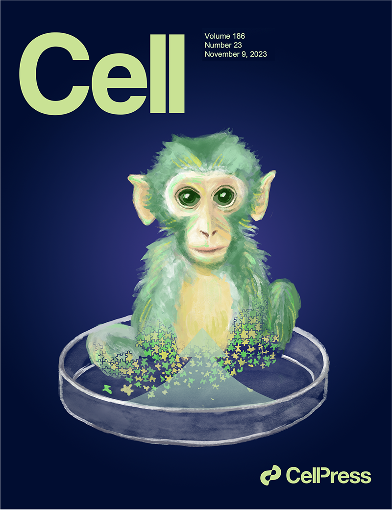 2023年11月9日24点,《Cell》期刊以封面文章的形式在线发表题为《Live birth of chimeric monkey with high contribution from embryonic stem cells》(高比例胚胎干细胞贡献的出生存活嵌合体猴)的研究论文。
