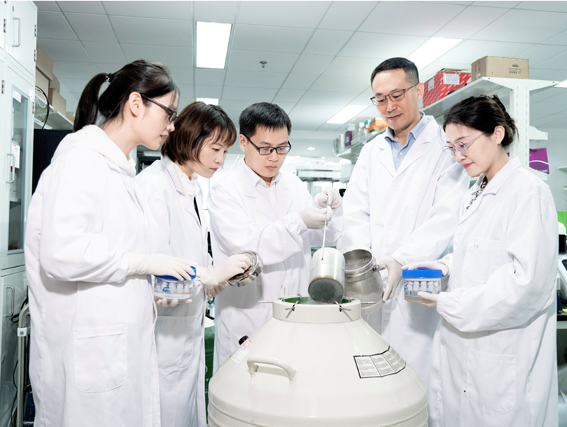 图5. 胚胎干细胞嵌合体猴研究团队主要成员(左起:李杰、曹静、刘真、孙强、李春杨)