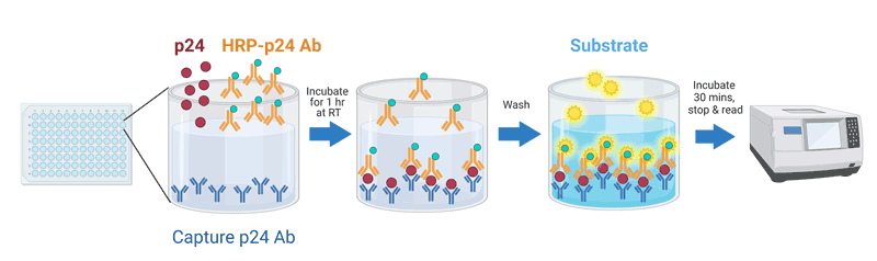 除此以外,ELISA检测板使用可分离的96孔板(12 x 8孔)形式,使用灵活,同时本试剂盒提供p24蛋白作为阳性对照,用于制定标准曲线、测定样品中的病毒含量。