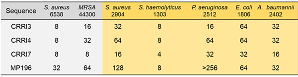 表1 抗菌六肽对各种细菌的MIC测试(ug/mL)
