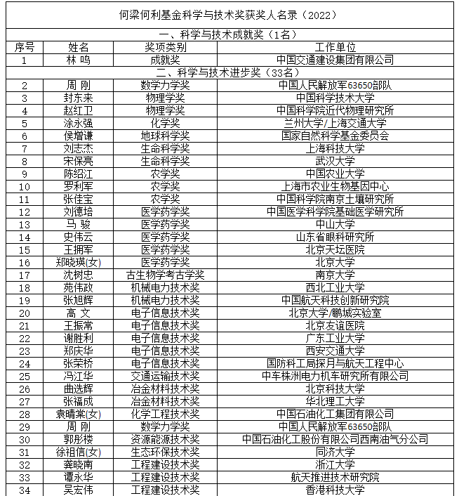 【字体: 大 中 小 】 时间:2023年02月22日 来源:112人!何梁何利基金2021和2022年度获奖名单公布