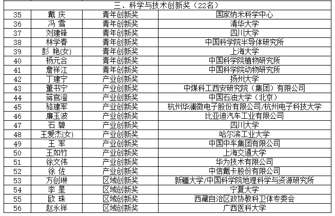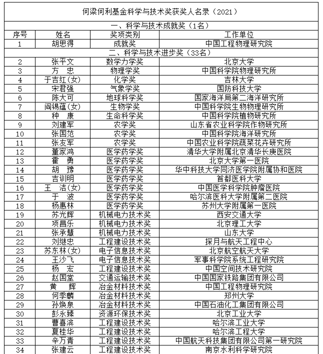 何梁何利基金科学与技术奖获奖人名录(2021)