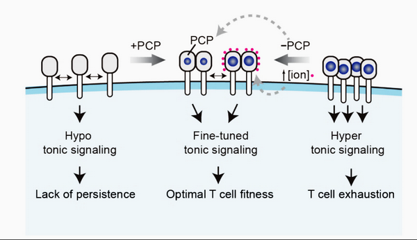 3月8日,国际学术期刊Cell Research在线发表了中国科学院分子细胞科学卓越创新中心(生物化学与细胞生物学研究所)许琛琦研究组、上海科技大学生命科学与技术学院王皞鹏课题组、复旦大学附属眼耳鼻喉科医院吴海涛团队、上海市第一人民医院宋献民课题组的合作研究成果: “Tuning Charge Density of Chimeric Antigen Receptor Optimizes Tonic Signaling and CAR-T Cell Fitness” ,并被杂志列为精选论文(Featured Article)。该论文阐明CAR-T细胞中基底信号形成机制,并开发了基于基底信号调控的CAR理性设计平台, 为推进CAR-T细胞治疗实体瘤提供新策略。