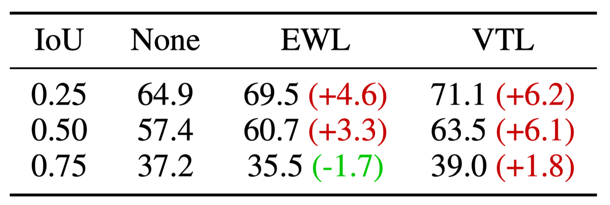 同时,课题组比较了让模型明确预测触摸线、明确预测肘腕线、和不预测任何手势信号的三种模型的表现。总的来说,在所有三个IoU阈值下,训练来预测触摸线的模型比训练来预测肘腕线的模型表现更好(表2)。在 0.75的IoU阈值下,经过训练可以明确预测肘腕线的模型比没有经过训练可以明确预测任何手势信号的模型表现更差。