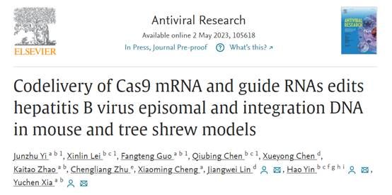 Antiviral Research |夏宇尘教授课题组开发新型CRISPR/Cas9 mRNA脂质纳米颗粒治疗乙型肝炎