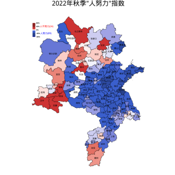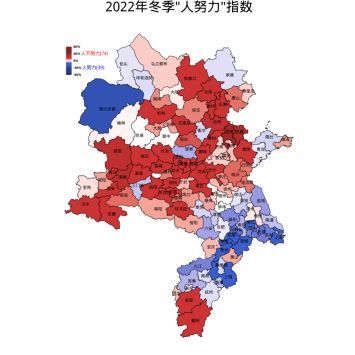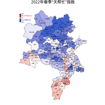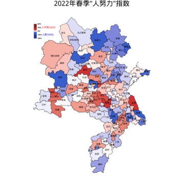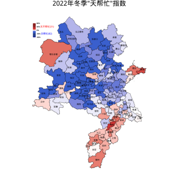 “3+110”城市2021年各季节PM2.5“人努力”和“天帮忙”指数地图