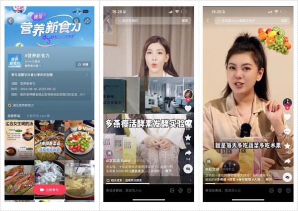 在短视频、直播的影响下,越来越多的人习惯于线上种草。行业数据显示,有94%的用户认为好的内容会影响自己对事物的看法。有鉴于此,「营养新食力」该活动由巨量引擎健康行业发起,旨在从大健康行业消费趋势切入,帮助人们建立营养生活的lifestyle,不仅采用话题种草联动,另有新人优惠卷,助力品牌拉新会员。活动自带热搜体质,在这里,人们分享诸多趣味方式来为自己加满营养,一经上线迅速占据各大话题榜首,即刻燃爆整个夏天。
