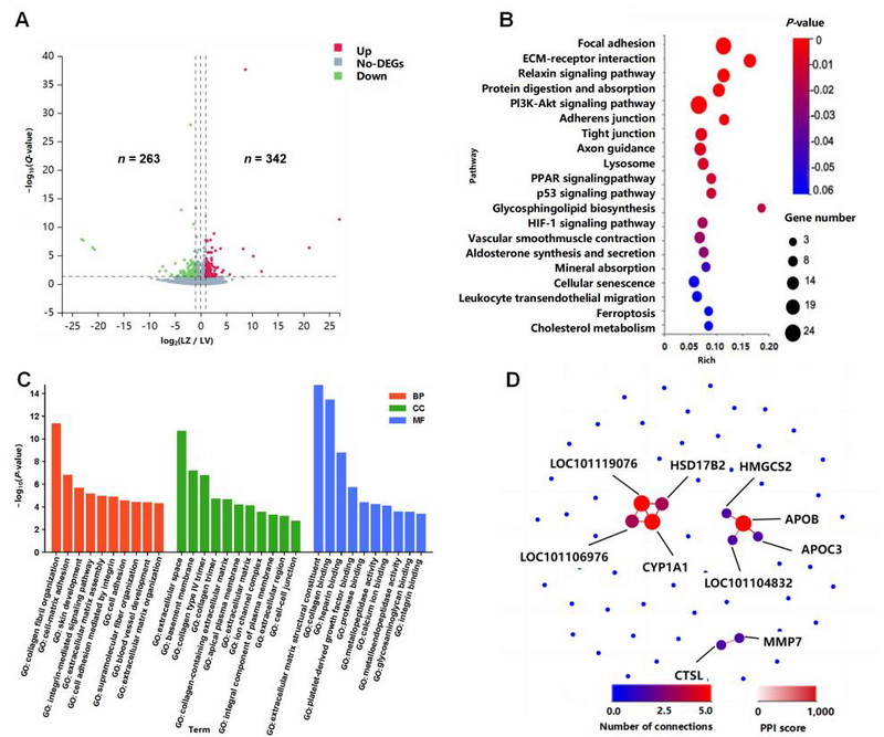 动物对极端环境的适应已成为近年来研究的热点。多数高原适应研究以分布于平原与高原的动物为研究对象,而本研究以分布于高原地区不同海拔梯度的扎什加羊(海拔4300米)和山谷型藏羊(海拔1800米)为研究对象,通过选择性消除分析、肺脏和肝脏转录组学分析,首次探讨了藏羊在高原上不同海拔梯度的适应机制。研究结果发现,藏羊可能通过减少脂质代谢、增强血管平滑肌和心脏收缩能力、调节体液平衡、提升免疫功能及抗氧化应激能力等生理功能适应极端高原环境。本研究为全面理解藏羊遗传资源及其高原适应机制提供了新的视角,同时为高原生物的适应性进化研究提供了重要科学依据。