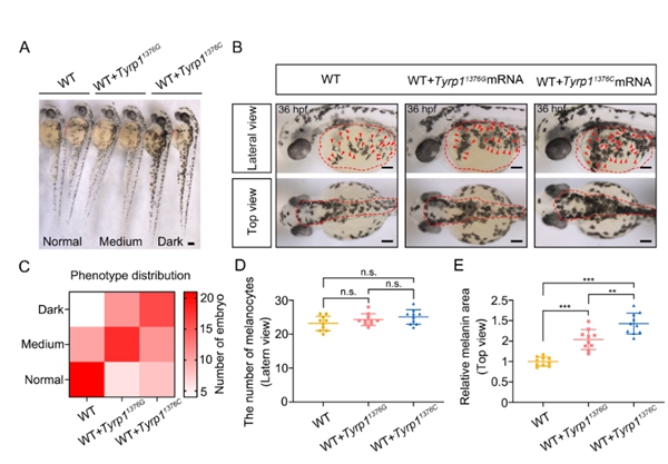图2 斑马鱼功能验证实验揭示深色种群Tyrp1基因功能