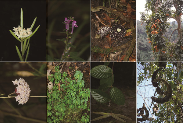 经过野外考察和室内鉴定,初步统计此次共发现有河口红豆(Ormosia hekouensis)、长管黄芩(Scutellaria macrosiphon)、口盖花蜘蛛兰(Esmeralda bella)、叠鞘石斛(Dendrobium denneanum)、榼藤(Entada phaseoloides)、万荣球兰(Hoya vangviengiensis)、裴氏关木通(Isotrema petelotii)、思茅藤(Epigynum auritum)等共十余种濒危、保护或具有潜在利用价值物种的新记录、新分布。并且完整记录了多数物种开花、结实等重要生物学过程的高清照片素材。